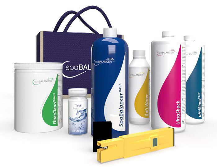 Ein mal pro Woche wird nun SpaBalancer Basic ins Wasser gegeben. Kontrolliere auch den PH Wert ein mal pro Woche und regle diesen gegebenenfalls mittels PH- auf unter 8.